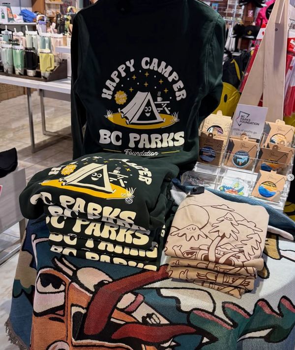 Our stock of @bcparksfdn hoodies, t-shirts, patches, and blankets are here!